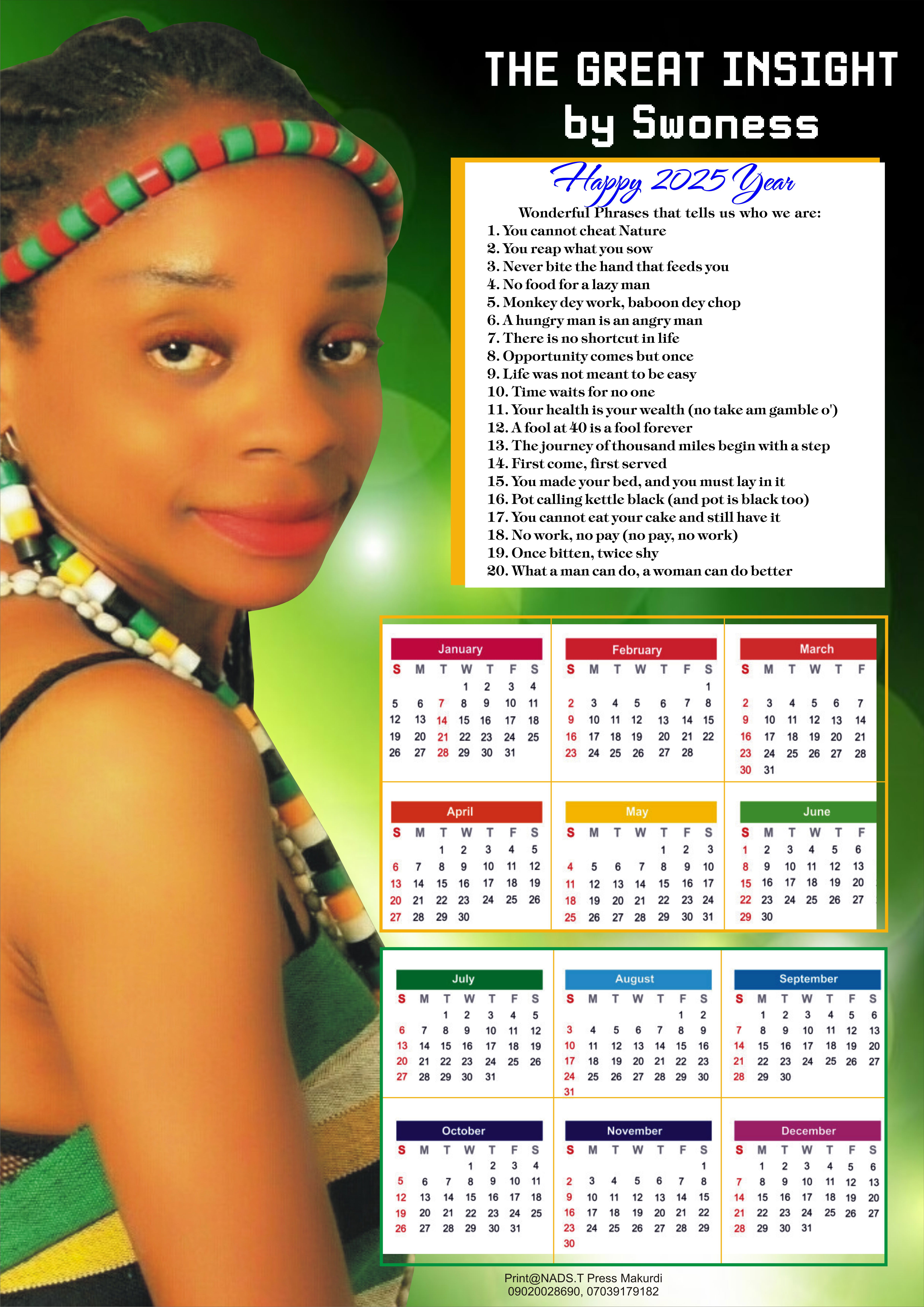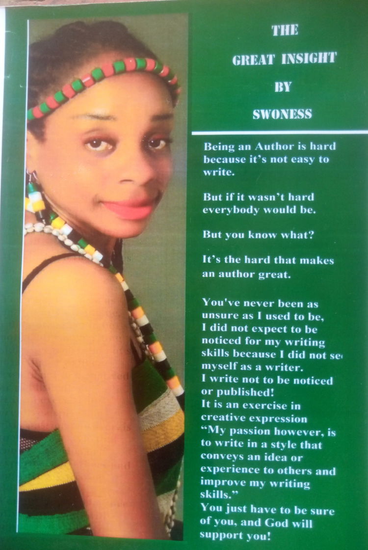 The Great Insight is a wise book by Swoness - the book is an insightful text that takes a critical look into the scourge of leadership, poverty, poor-health and drug-abuse, etc. in an attempt to reduce both in Nations.......................read more in the book. If you read the Great Insight; you will see or know things you never did!